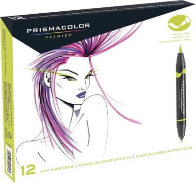 Prismacolor Premier Double-Ended Art Markers, Fine And Brush Tip, Adult Coloring, 12 Pack
