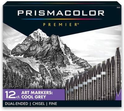Prismacolor Premier Double-Ended Art Markers, Fine And Chisel Tip, Cool Grey, Adult Coloring, 12 Pack