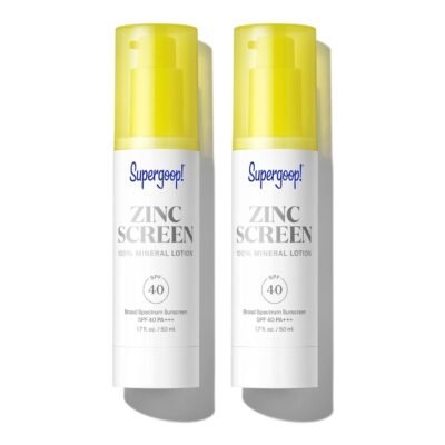 Supergoop! Zincscreen – 1.7 fl oz, Pack of 2 – SPF 40 PA+++ 100% Mineral Face Lotion & Broad Spectrum Sunscreen – Lightweight, Blendable Formula with Pink Hue