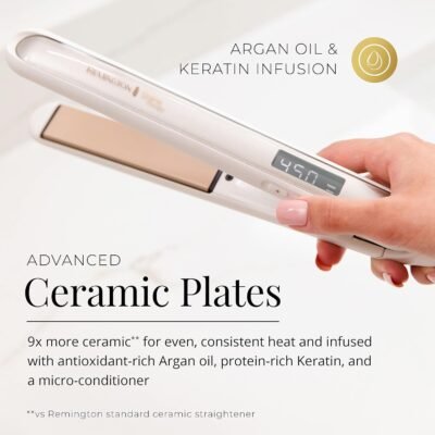 Remington Shine Therapy 1 inch Hair Straightener Iron, Infused with Argan Oil & Keratin, Professional Ceramic Flat Iron for Less Frizz, Shinier & Smoother Hair, Hair Styling Tools