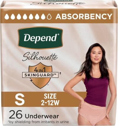 Depend Silhouette Incontinence & Postpartum Underwear for Women, Maximum Absorbency, Small (26–34″ Waist), 26 Count (Packaging may vary)