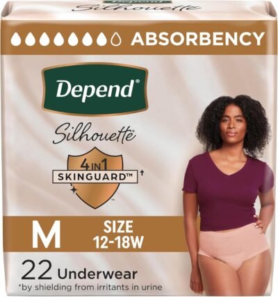 Depend Silhouette Incontinence & Postpartum Underwear for Women, Maximum Absorbency, Medium (32–42″ Waist), 22 Count (Packaging may vary)