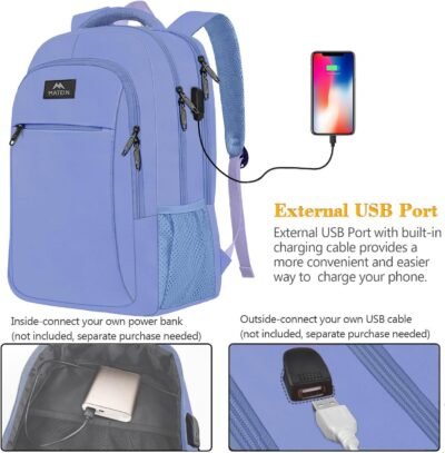 - USB PORT DESIGN: With built in USB charger outside and built in charging cable inside,this usb backpack offers you a more convenient way to charge your phone while walking. Please noted that this backpack doesn’t power itself, usb charging port only offers an easy access to charge